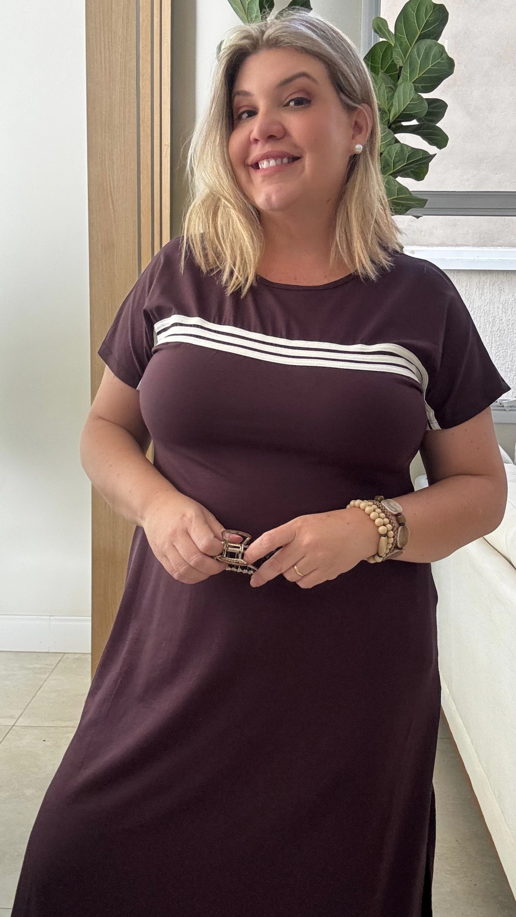 O Vestido Ady é perfeito para quem busca conforto com estilo. Feito em malha macia, ele tem um toque suave e ótimo caimento, que proporciona liberdade de movimento sem perder a elegância. O detalhe das listras horizontais traz um charme extra ao modelo, que conta com fendas laterais discretas para um toque moderno.